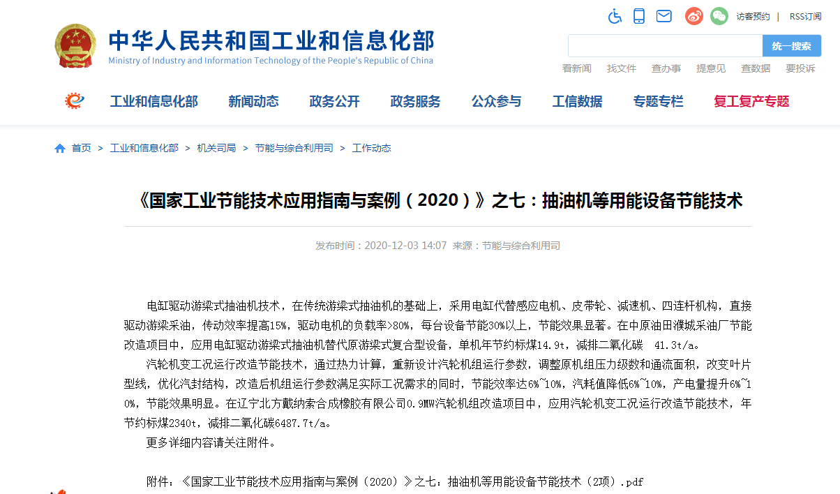 2020年12月3日,國(guó)家工業(yè)和信息化部發(fā)布2020年《國(guó)家工業(yè)節(jié)能技術(shù)應(yīng)用指南與案例(2020)》,其中我公司核心節(jié)能技術(shù)“汽輪機(jī)變工況運(yùn)行改造節(jié)能技術(shù)”成功入選。