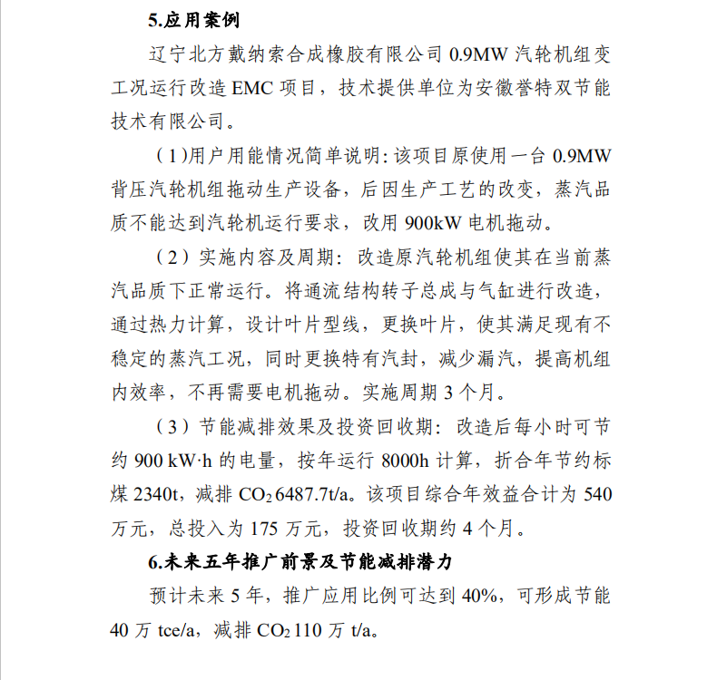 這是繼公司核心技術(shù)“工業(yè)蒸汽輪機(jī)通流結(jié)構(gòu)技改提效技術(shù)”,2019年獲得國(guó)家工業(yè)和信息化部《國(guó)家工業(yè)節(jié)能技術(shù)應(yīng)用指南與案例(2019)》之后,又一次獲得國(guó)家級(jí)榮譽(yù),同時(shí)標(biāo)志著我公司當(dāng)前已有兩項(xiàng)核心工業(yè)節(jié)能技術(shù),正式獲得國(guó)家級(jí)層面的推廣與市場(chǎng)應(yīng)用支持。