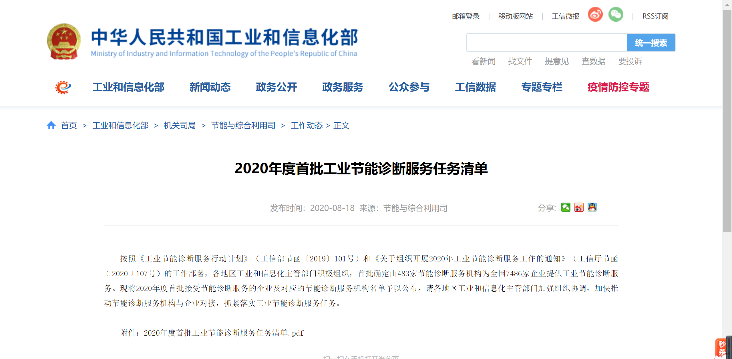 2020年7月,我公司中標(biāo)工業(yè)和信息化部節(jié)能與綜合利用司——2020年度節(jié)能診斷服務(wù)機(jī)構(gòu)選聘項(xiàng)目。