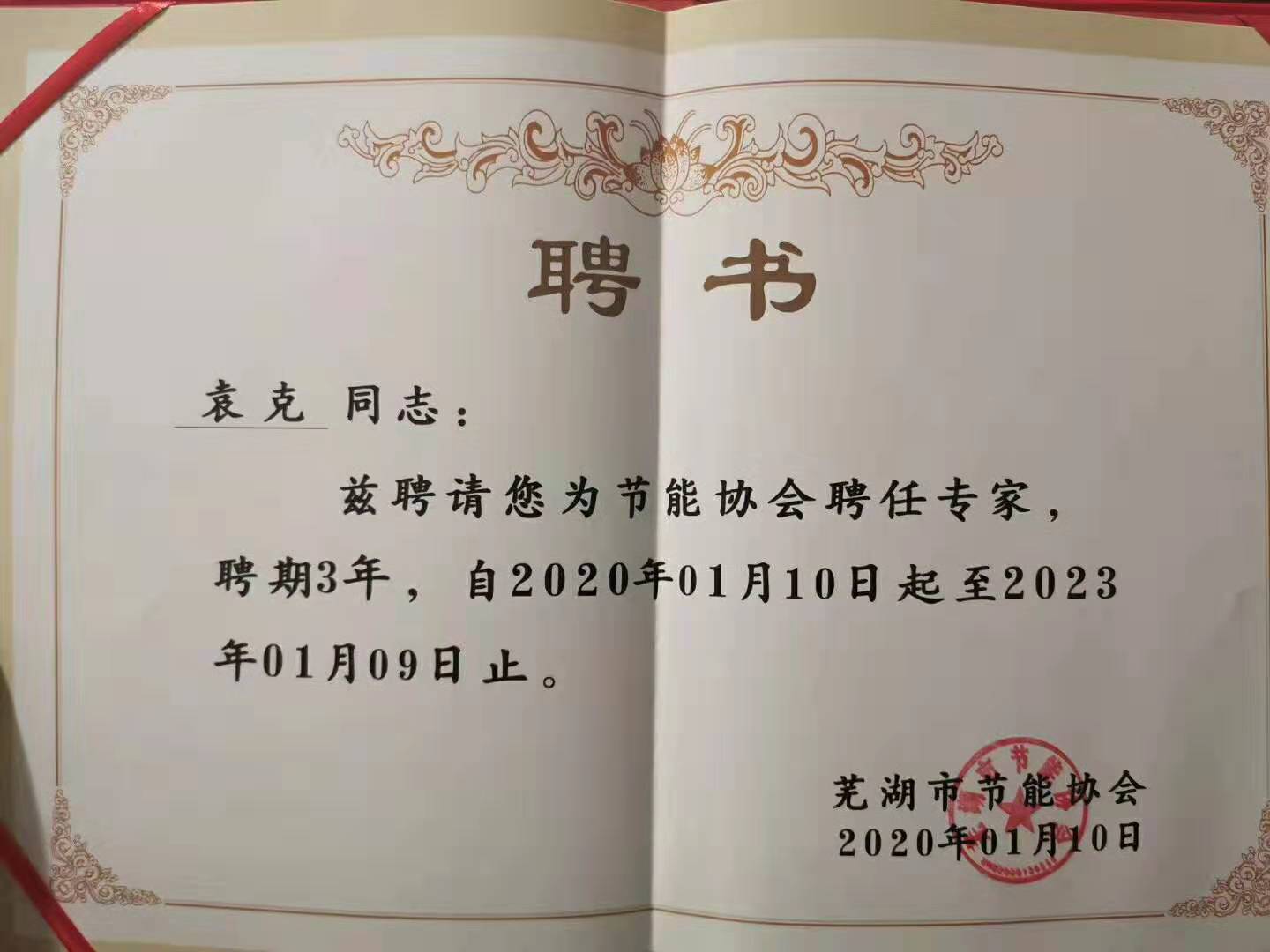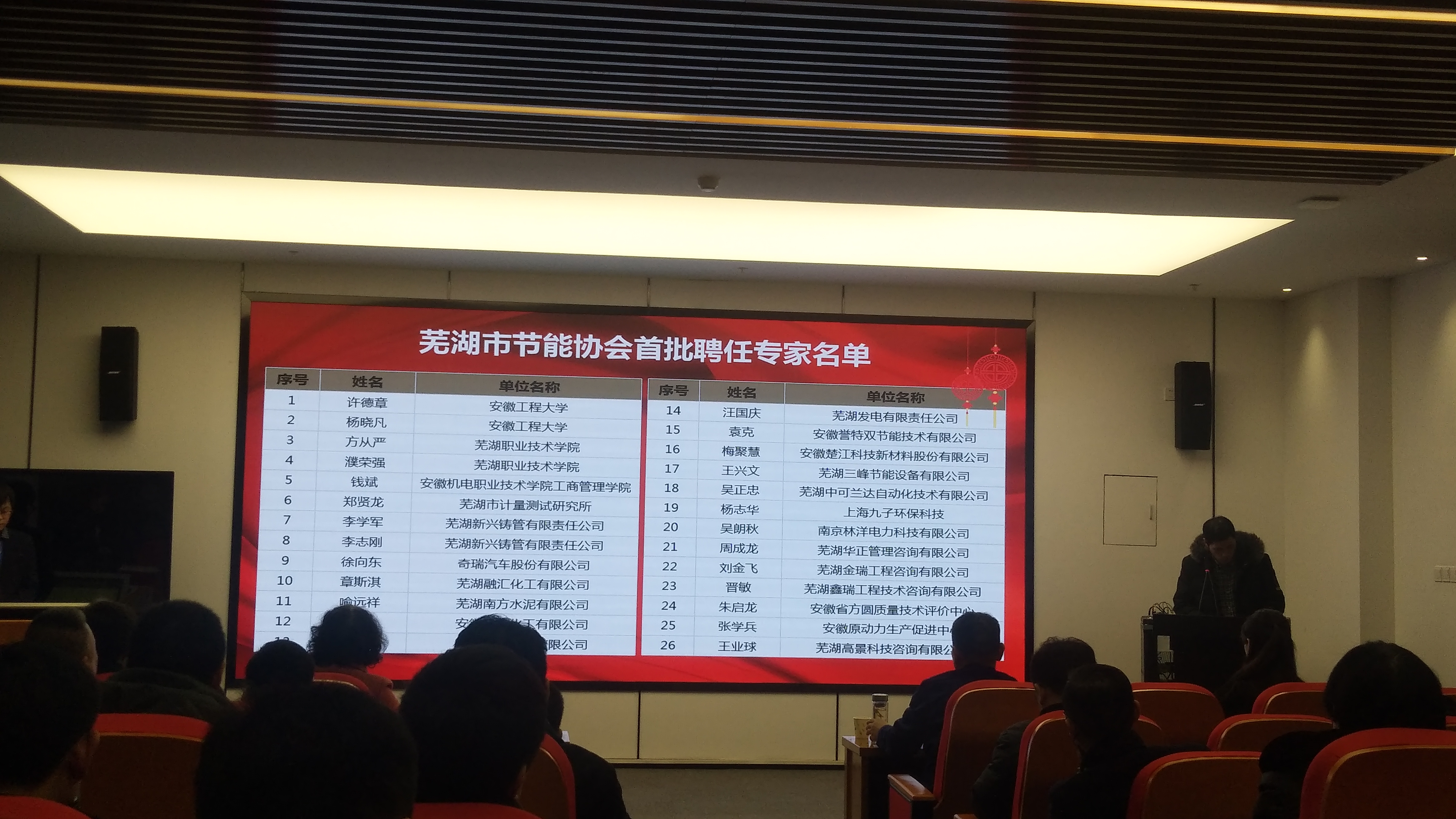 1月10日,蕪湖市節(jié)能協(xié)會年會暨節(jié)能宣貫對接交流會在蕪湖市企業(yè)服務(wù)中心順利召開,會上進(jìn)行了首批節(jié)能協(xié)會專家聘任儀式,我公司總經(jīng)理袁克先生獲聘協(xié)會專家,并做《大工業(yè)領(lǐng)域熱工系統(tǒng)綜合節(jié)能技改提效解決方案》專題匯報。