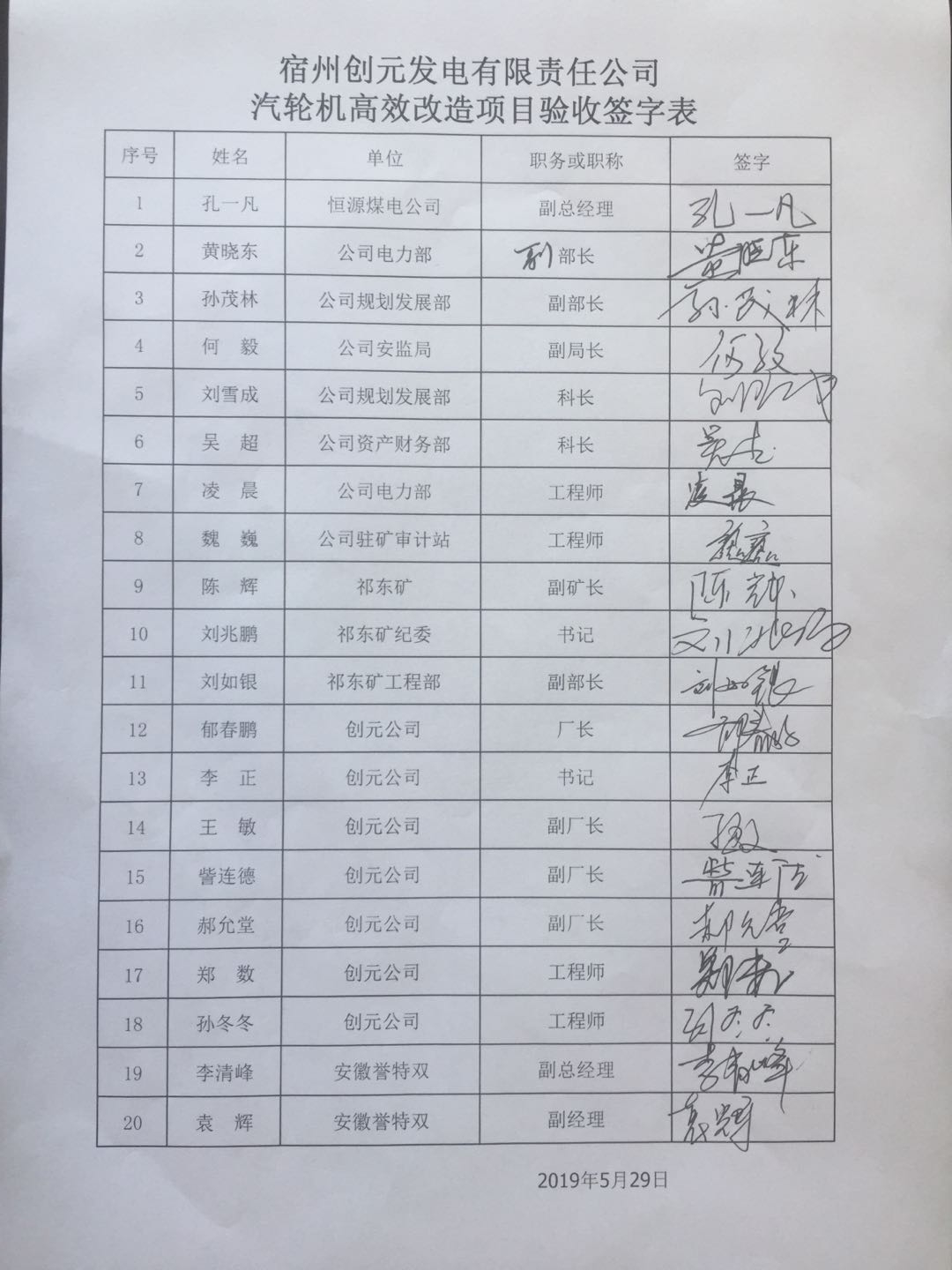 2019年5月29日上午,皖北煤電集團(tuán)組織規(guī)劃發(fā)展部、電力部、資產(chǎn)管理部、安監(jiān)局、公司駐礦審計(jì)站、創(chuàng)元公司等6個(gè)部門(mén),共計(jì)18人組成驗(yàn)收領(lǐng)導(dǎo)小組。