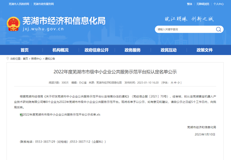 熱烈祝賀公司再次認(rèn)定為2022年度蕪湖市中小企業(yè)公共服務(wù)示范平臺(tái)