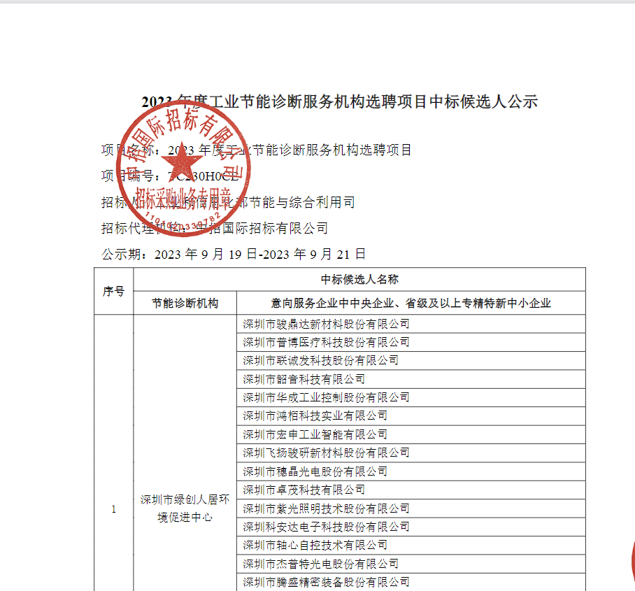 2023年9月,我公司成功中標(biāo)國家工信部2023年度工業(yè)節(jié)能診斷服務(wù)機(jī)構(gòu)選聘項目,本次中標(biāo)也是公司連續(xù)四年中標(biāo)工信部節(jié)能診斷服務(wù)機(jī)構(gòu)項目。