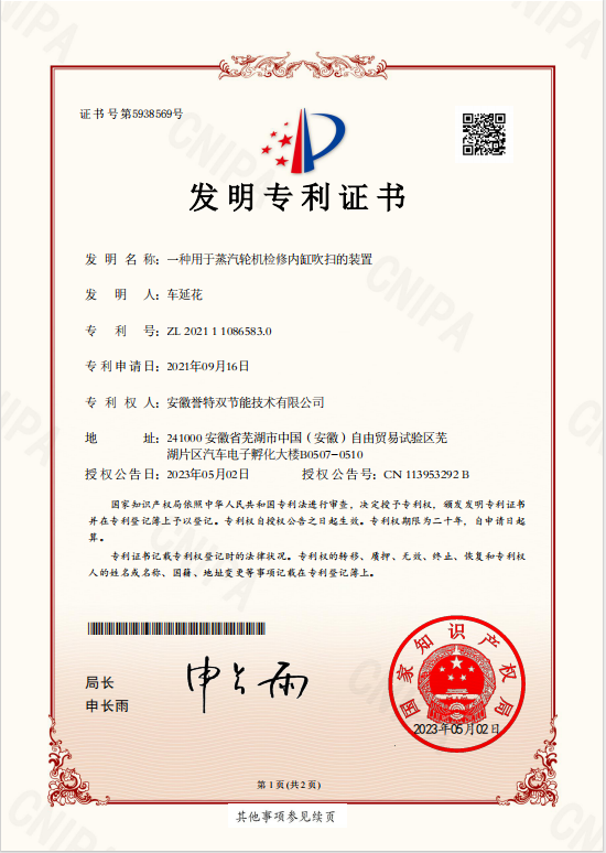 近日,我公司申請的四項發(fā)明專利——“一種采用蒸汽輪機的循環(huán)發(fā)電裝置”、“一種使用蒸汽輪機的發(fā)電機”、“一種用于蒸汽輪機檢修內(nèi)缸吹掃的裝置”、“一種蒸汽輪機的安全散熱器”,經(jīng)過受理、一次審查和答辯、實質(zhì)性審查后,獲得國家知識產(chǎn)權(quán)局正式授權(quán)。