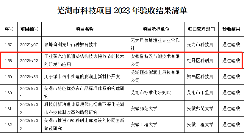 科技項(xiàng)目“工業(yè)蒸汽輪機(jī)通流結(jié)構(gòu)技改提效節(jié)能技術(shù)的研發(fā)與應(yīng)用”通過(guò)蕪湖市科技局驗(yàn)收