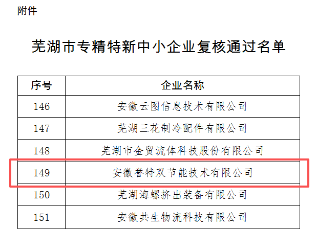 喜訊--熱烈祝賀我司順利通過“蕪湖市專精特新中小企業(yè)”復(fù)核